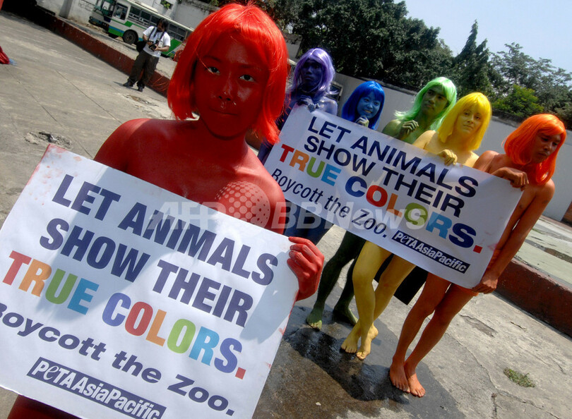 ニュース 環境・科学 こぼれ話 動物愛護団体PETA、マニラの動物園で抗議パフォーマンス 2007年9月14日 3:33 発信地:マニラ/フィリピン [ アジア・オセアニア フィリピン ] このニュースをシェア ‹ › ❮ 3/8 ❯ 2007年9月13日、マニラ(Manila)で、全身に色を塗り動物園に対する抗議活動を行うPETAの活動家。(c)AFP/Jay DIRECTO 画像作成中 ! 【9月14日 AFP】動物愛護団体「動物の倫理的扱いを求める人々の会(People for Ethical Treatment of Animals、PETA)」は13日、マニラ(Manila)で動物園に対する抗議活動を行った。PETAは動物園を訪れた人々に対し、動物をおりに閉じこめずに野生に返すよう主張し、動物園のボイコットを訴えた。(c)AFP 環境・科学 一覧へ> メディア・報道関係・法人の方向け 写真・動画 購入のお問合せ>