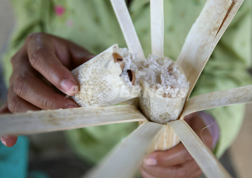 ニュース ライフ 竹筒に米を入れて蒸したカンボジアの民族料理「コムラン」 2007年9月14日 6:51 発信地:クラチエ/カンボジア [ アジア・オセアニア カンボジア ] このニュースをシェア ‹ › ❮ 1/3 ❯ 2007年9月13日、カンボジアの首都プノンペン(Phnom Penh)から北東に315キロ離れたクラチエ(Kratie)州で有名な民族料理コムラン(Kralan)。(c)AFP/TANG CHHIN SOTHY 画像作成中 ! 【9月14日 AFP】カンボジアの首都プノンペン(Phnom Penh)から北東に315キロ離れたクラチエ(Kratie)州では、竹筒に米を入れて蒸す民族料理コムラン(Kralan)がごちそうとして有名だ。(c)AFP ライフ 一覧へ> メディア・報道関係・法人の方向け 写真・動画 購入のお問合せ>