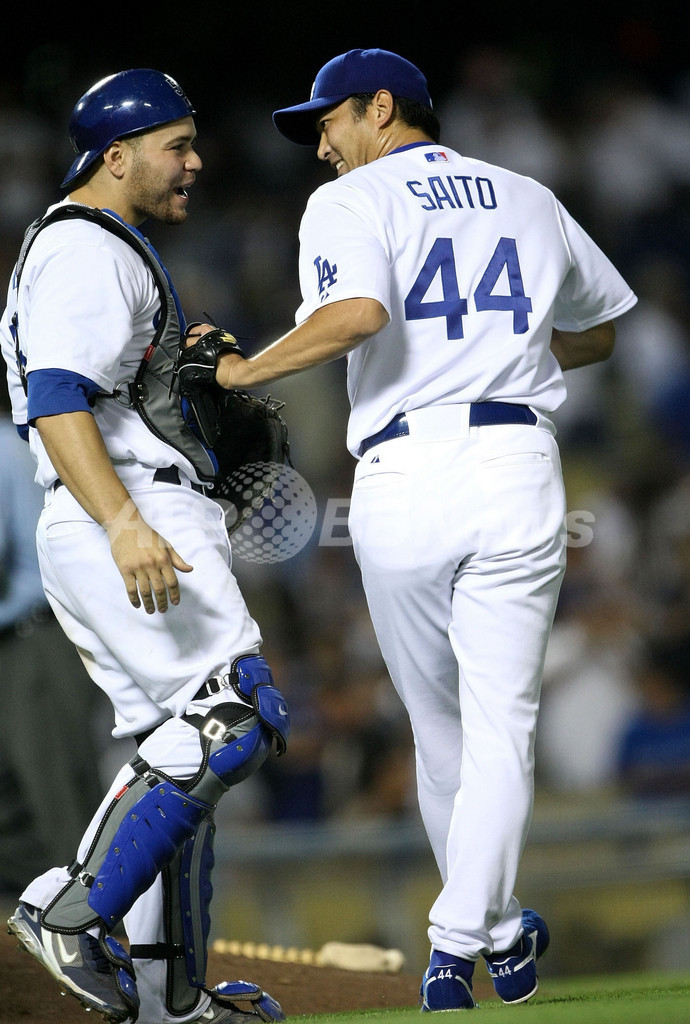 スポーツ 野球 斉藤隆 パドレス戦で38セーブ目を挙げる 2007年9月14日 17:46 発信地:ロサンゼルス/米国 [ 北米 米国 ] このニュースをシェア ‹ › ❮ 3/5 ❯ ラッセル・マーティン(%%Russell Martin%%、左)と勝利の喜びを分かち合う斉藤。(c)AFP/Getty Images Stephen Dunn 画像作成中 ! 【9月14日 AFP】07MLB、サンディエゴ・パドレス(San Diego Padres)vsロサンゼルス・ドジャース(Los Angeles Dodgers)。9回から登板したドジャースの4番手・斉藤隆(Takashi Saito)は、1回を無安打無失点に抑え今シーズン38セーブ目を挙げた。試合はドジャースが6-3でパドレスに勝利し、2連勝を飾った。(c)AFP/Getty Images 野球 一覧へ> メディア・報道関係・法人の方向け 写真・動画 購入のお問合せ>