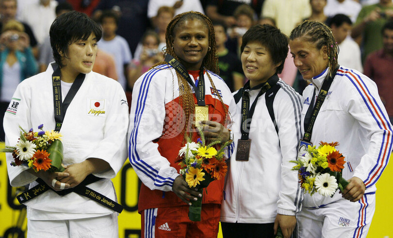 【9月14日 AFP】第25回世界柔道選手権(25th World Judo Championship)、女子78キロ級。決勝で日本の中澤さえ(Sae Nakazawa)を破り金メダルを獲得したキューバのユリセル・ラボルデ(Yurisel Laborde)は、2位に終わり銀メダルを獲得した中沢、3位に入り銅メダルを獲得した韓国のMi Gyeong Jeong、フランスのStephanie Possamaiと共にメダル授与式に臨んだ。(c)AFP