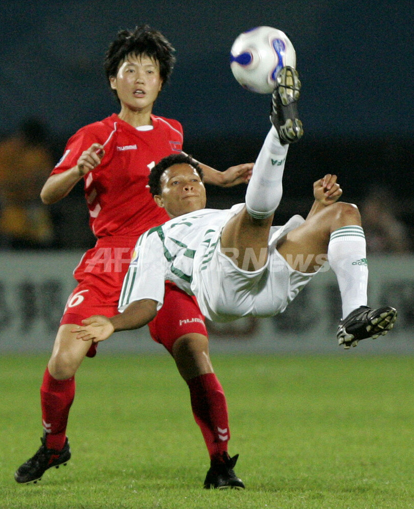 スポーツ サッカー 北朝鮮 ナイジェリアを降し大会初勝利 2007年9月15日 8:56 発信地:成都/中国 [ 中国・台湾 中国 ] このニュースをシェア ‹ › ❮ 6/6 ❯ %%Hye Ok Kong%%を背にボールを蹴るナイジェリアの%%Chi-Chi Igbo%%(右)。(c)AFP 画像作成中 ! 【9月15日 AFP】女子サッカー07W杯・グループB、北朝鮮vsナイジェリア。試合は北朝鮮が2-0でナイジェリアを降し、大会初勝利を挙げた。(c)AFP サッカー 一覧へ> メディア・報道関係・法人の方向け 写真・動画 購入のお問合せ>