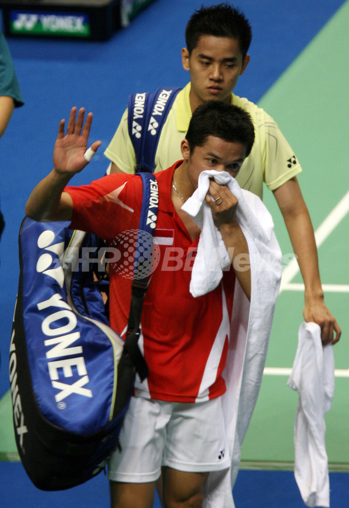 【9月15日 AFP】バドミントン、スーパーシリーズ(Super Series)第8戦、ヨネックス・オープン・ジャパン(YONEX OPEN JAPAN 2007)・男子シングルス準決勝。インドネシアのタウフィック・ヒダヤット(Taufik Hidayat)は、同じインドネシアのサイモン・サントソ(Simon Santoso)と対戦。ヒダヤットはセットカウント2-0(21-14、21-16)でサントソを破り、決勝進出を決めた。(c)AFP