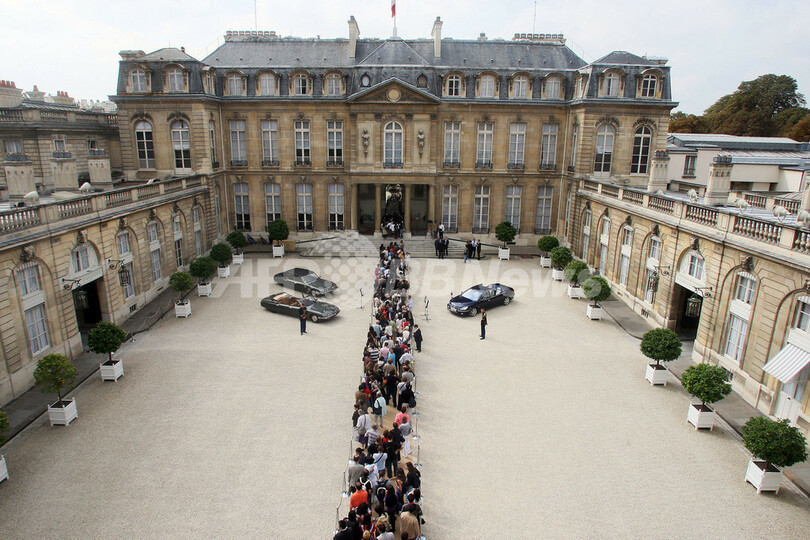 サルコジ仏大統領、エリゼ宮で見学者を歓迎