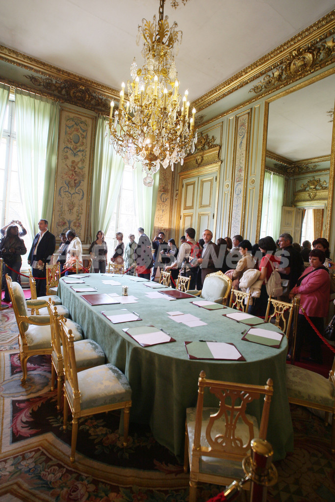 【9月16日 AFP】フランスで15日、国が所有する施設や建物を自由に見学できる「Heritage Days weekend」が始まった。毎年9月の第3週末に開かれる同イベントでは、この期間中のみ公開されるものを含む約1万5000に及ぶ施設が一般公開される。初日となるこの日の朝、パリの大統領府エリゼ宮(Elysee Palace)では、ニコラ・サルコジ(Nicolas Sarkozy)大統領が一番乗りで入場を目指す人々を出迎えた。(c)AFP
