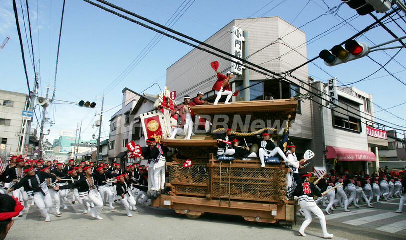 ニュース ライフ こぼれ話 岸和田だんじり、大迫力の「やりまわし」に歓声 2007年9月16日 16:21 発信地:大阪 [ アジア・オセアニア 大阪 ] このニュースをシェア ‹ › ❮ 2/3 ❯ 2007年9月16日、大阪府岸和田(Kishiwada)市で行われた「岸和田だんじり祭」で全力疾走のまま直角に曲がる「やりまわし」を披露するだんじり。(c)AFP/KAZUHIRO NOGI 画像作成中 ! 【9月16日 AFP】大阪府岸和田(Kishiwada)市で伝統の「岸和田だんじり祭」が15日から始まった。計35台のだんじりが、全力疾走のまま曳(ひ)いて直角に曲がる「やりまわし」を披露するなどして大いに観客を沸かせた。(c)AFP ライフ 一覧へ> メディア・報道関係・法人の方向け 写真・動画 購入のお問合せ>