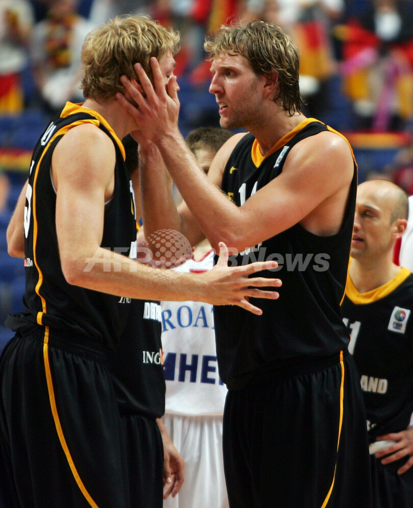 スポーツ バスケットボール ドイツ 5位で大会を終える 2007年9月17日 5:11 発信地:マドリード/スペイン [ ヨーロッパ スペイン ] このニュースをシェア ‹ › ❮ 5/6 ❯ チームメイトのヤン・ヘンドリック・ヤグラ(%%Jan-Hendrik Jagla%%、左)と言葉を交わすドイツのダーク・ノビツキー(%%Dirk Nowitzki%%)。(c)AFP/PEDRO ARMESTRE 画像作成中 ! 【9月17日 AFP】バスケットボール欧州選手権2007(EuroBasket 2007)・5-6位決定戦、クロアチアvsドイツ。試合はドイツが80-71でクロアチアを降し5位で大会を終えた。両チームは2008年7月に、北京五輪への出場権を賭けて世界最終予選に臨む。(c)AFP バスケットボール 一覧へ> メディア・報道関係・法人の方向け 写真・動画 購入のお問合せ>