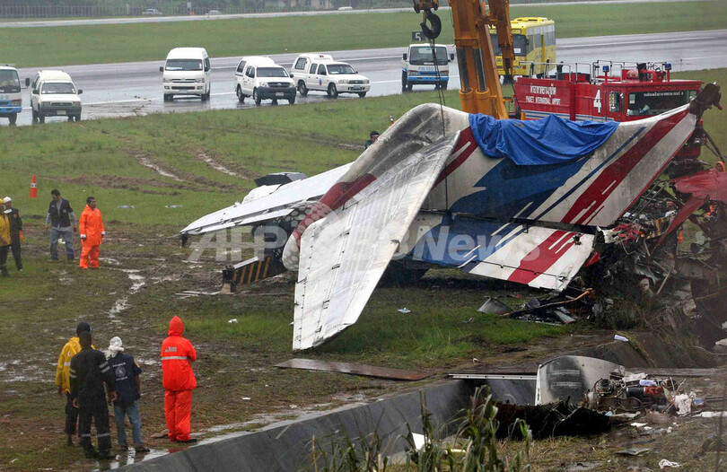 【9月17日 AFP】(一部更新)タイ南部のリゾート地、プーケット(Phuket)島の国際空港で16日、タイ航空会社ワンツーゴー(One-Two-Go)の旅客機(乗客乗員130人)が着陸に失敗し炎上した事故で、残がいの除去などとともに原因究明作業が進められている。同事故による死者は89人に上り、過去10年間のタイ国内の航空機事故で最多となった。犠牲者のうち55人は外国籍の乗客だと当局は発表している。