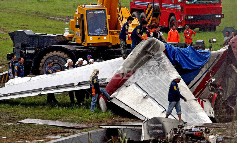 タイで過去最悪の犠牲者を出した航空機事故は、1998年のタイ航空(Thai Airways)エアバス機墜落で、今回の事故と似た状況下で旅客機が水田に墜落し、101人が死亡した。(c)AFP/Griffin Shea
