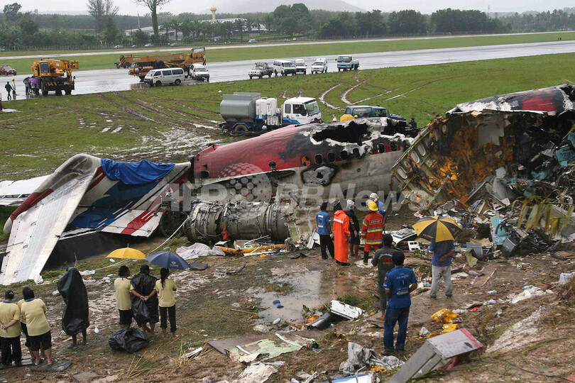 【9月17日 AFP】(一部更新)タイ南部のリゾート地、プーケット(Phuket)島の国際空港で16日、タイ航空会社ワンツーゴー(One-Two-Go)の旅客機(乗客乗員130人)が着陸に失敗し炎上した事故で、残がいの除去などとともに原因究明作業が進められている。同事故による死者は89人に上り、過去10年間のタイ国内の航空機事故で最多となった。犠牲者のうち55人は外国籍の乗客だと当局は発表している。
