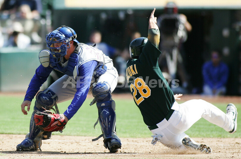スポーツ 野球 レンジャーズ アスレチックスとの接戦を制す 2007年9月17日 17:54 発信地:オークランド/米国 [ 北米 米国 ] このニュースをシェア ‹ › ❮ 10/12 ❯ レンジャースのジェレッド・サルタラマッキア(%%Jarrod Saltalamacchia%%)のブロックをかわし本塁へ滑り込むアスレチックスのカート・スズキ(%%Kurt Suzuki%%、右)。(c)AFP/Getty Images Sara Wolfram 画像作成中 ! 【9月17日 AFP】07MLB、テキサス・レンジャーズ(Texas Rangers)vsオークランド・アスレチックス(Oakland Athletics)。試合はレンジャーズが11-9でアスレチックスを降した。(c)AFP/Getty Images 野球 一覧へ> メディア・報道関係・法人の方向け 写真・動画 購入のお問合せ>