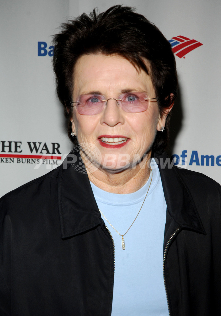 2007年9月17日、ニューヨーク近代美術館(The Museum of Modern Art)で行われた映画『The War』のプレミア上映会に登場した、元テニス選手のビリー・ジーン・キング(%%Billie Jean King%%)。(c)AFP/Getty Images Rob Loud