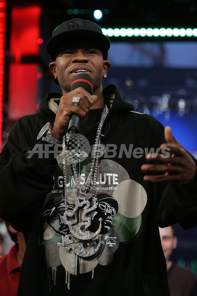 2007年9月18日、タイムズ・スクエア・スタジオ(Times Square Studios)で行われたMTVの音楽情報番組「Total Request Live」に出演しパフォーマンスを披露するラッパーのカミリオネア(Chamillionaire)。(c)AFP/Getty Images Bryan Bedder