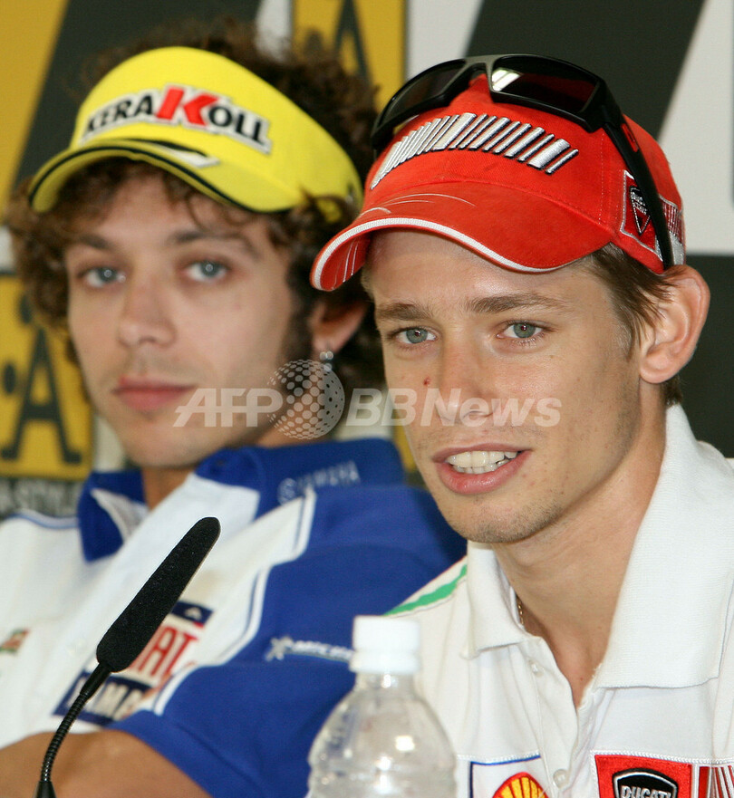 スポーツ モータースポーツ 世界ロードレース選手権・日本GP開幕を控え記者会見が行われる 2007年9月20日 19:17 発信地:栃木 [ アジア・オセアニア 栃木 ] このニュースをシェア ‹ › ❮ 10/10 ❯ 記者会見に臨むフィアット・ヤマハ(%%Fiat Yamaha%%)のバレンティーノ・ロッシ(%%Valentino Rossi%%、左)とドゥカティ・マールボロ(%%Ducati Marlboro%%)のケーシー・ストーナー(%%Casey Stoner%%、右)。(c)AFP/KAZUHIRO NOGI 画像作成中 ! 【9月20日 AFP】世界ロードレース選手権(WGP)・第15戦・日本GPの開幕を翌21日に控え、会場となるツインリンクもてぎ(Twingring Motegi)では記者会見が行われ、ダンロップ・ヤマハ・テック3(Dunlop Yamaha Tech 3)の玉田誠(Makoto Tamada)をはじめとする出場予定のライダーらが出席した。(c)AFP モータースポーツ 一覧へ> メディア・報道関係・法人の方向け 写真・動画 購入のお問合せ>