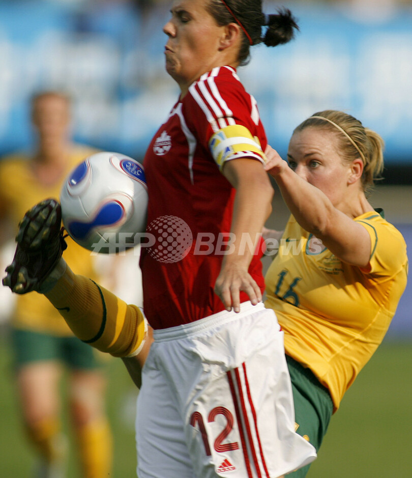 スポーツ サッカー 女子サッカーW杯 オーストラリア カナダと引き分けるもグループ2位で準々決勝へ 2007年9月20日 21:23 発信地:成都/中国 [ 中国・台湾 中国 ] このニュースをシェア ‹ › ❮ 2/8 ❯ ボールを競るオーストラリアのローレン・コルソープ(%%Lauren Colthorpe%%、右)とカナダのクリスティン・シンクレア(%%Christine Sinclair%%、左)。(c)AFP/LIU Jin 画像作成中 ! 【9月20日 AFP】女子サッカー07W杯・グループC、オーストラリアvsカナダ。試合はオーストラリアが2-2でカナダと引き分けで終え、通算成績を1勝2分けとして勝ち点を5に伸しグループ2位での決勝トーナメント進出を決めた。(c)AFP サッカー 一覧へ> メディア・報道関係・法人の方向け 写真・動画 購入のお問合せ>