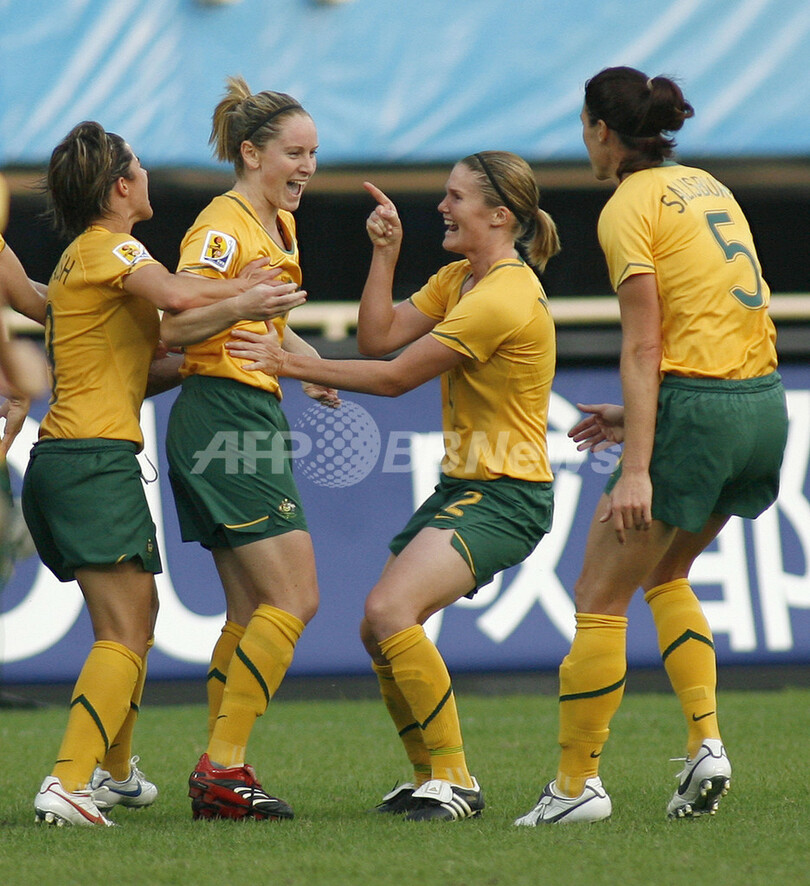 スポーツ サッカー 女子サッカーW杯 オーストラリア カナダと引き分けるもグループ2位で準々決勝へ 2007年9月20日 21:23 発信地:成都/中国 [ 中国・台湾 中国 ] このニュースをシェア ‹ › ❮ 8/8 ❯ フリーキックから得点しチームメイトと歓喜するオーストラリアのコレット・マッカラム(%%Collette MCCALLUM%%、左2)。(c)AFP/LIU Jin 画像作成中 ! 【9月20日 AFP】女子サッカー07W杯・グループC、オーストラリアvsカナダ。試合はオーストラリアが2-2でカナダと引き分けで終え、通算成績を1勝2分けとして勝ち点を5に伸しグループ2位での決勝トーナメント進出を決めた。(c)AFP サッカー 一覧へ> メディア・報道関係・法人の方向け 写真・動画 購入のお問合せ>