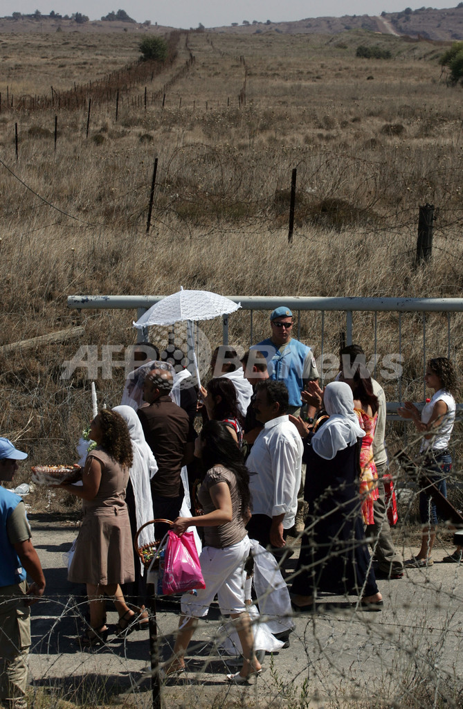 【9月21日 AFP】イスラエルのWaed Mundarさん(25)は19日、ゴラン高原(Golan Heights)の町クネイトラ(Quneitra)から、結婚式のため親族とともにシリアに入った。ゴラン高原は1967年の第3次中東戦争でイスラエルの支配下に置かれた戦略上の要衝。Mundarさんは、国連兵力引き離し監視軍が駐留する同町から国境を越えシリアに入国、花婿と従兄弟のMajd Mundarさん(30)に再会する。Mundarさんの親族は第3次中東戦争で離散、シリアとゴラン高原に分かれて住んでいる。悪化する両国関係のため、Mundarさんの親族が再会できる見込みは少なかった。(c)AFP