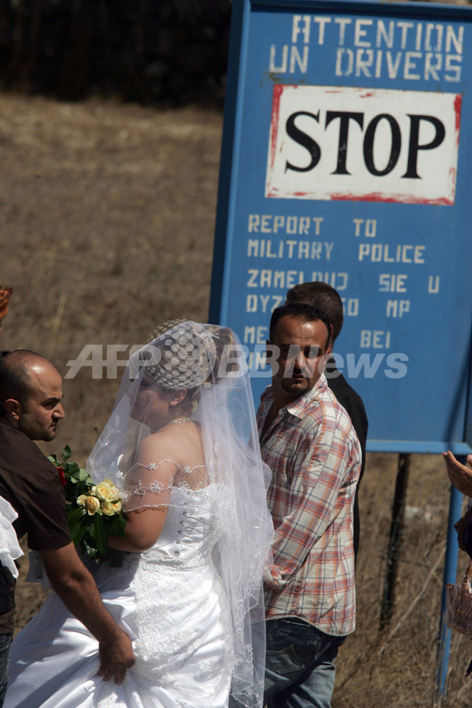 【9月21日 AFP】イスラエルのWaed Mundarさん(25)は19日、ゴラン高原(Golan Heights)の町クネイトラ(Quneitra)から、結婚式のため親族とともにシリアに入った。ゴラン高原は1967年の第3次中東戦争でイスラエルの支配下に置かれた戦略上の要衝。Mundarさんは、国連兵力引き離し監視軍が駐留する同町から国境を越えシリアに入国、花婿と従兄弟のMajd Mundarさん(30)に再会する。Mundarさんの親族は第3次中東戦争で離散、シリアとゴラン高原に分かれて住んでいる。悪化する両国関係のため、Mundarさんの親族が再会できる見込みは少なかった。(c)AFP