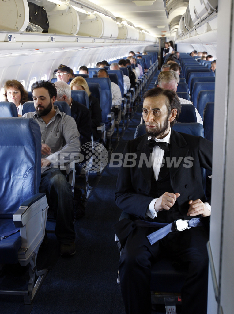 【9月22日 AFP】10月5日にワシントンD.C.で行われるマダム・タッソー(Madame Tussauds)蝋(ろう)人形館のオープニング記念式典に出席するため、エーブラハム・リンカーン(Abraham Lincoln)元大統領が飛行機でニューヨークを出発した。といっても、これは同元大統領の蝋人形の話。オープニングのプロモーションのため、ラガーディア空港(La Guardia Airport)から、ワシントンに運ばれた。(c)AFP