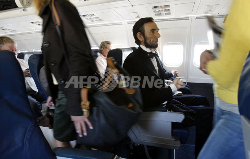 【9月22日 AFP】10月5日にワシントンD.C.で行われるマダム・タッソー(Madame Tussauds)蝋(ろう)人形館のオープニング記念式典に出席するため、エーブラハム・リンカーン(Abraham Lincoln)元大統領が飛行機でニューヨークを出発した。といっても、これは同元大統領の蝋人形の話。オープニングのプロモーションのため、ラガーディア空港(La Guardia Airport)から、ワシントンに運ばれた。(c)AFP