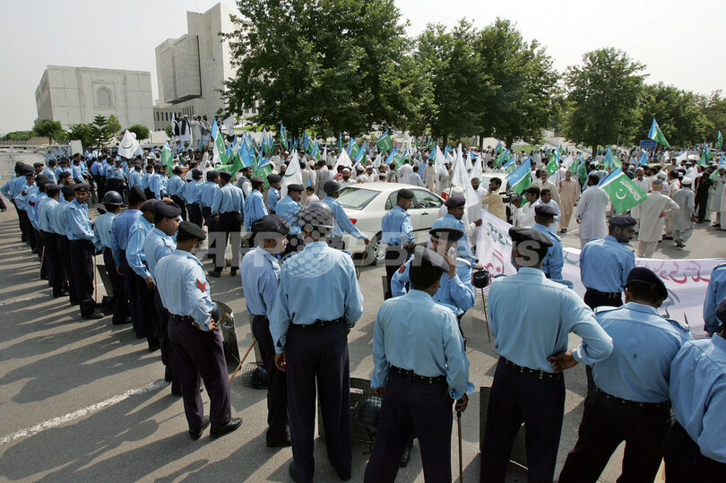 【9月21日 AFP】パキスタンの首都イスラマバード(Islamabad)の最高裁判所前で21日、保守イスラム政党メンバー約800人がペルベズ・ムシャラフ(Pervez Musharraf)大統領に対する抗議行動を行った。