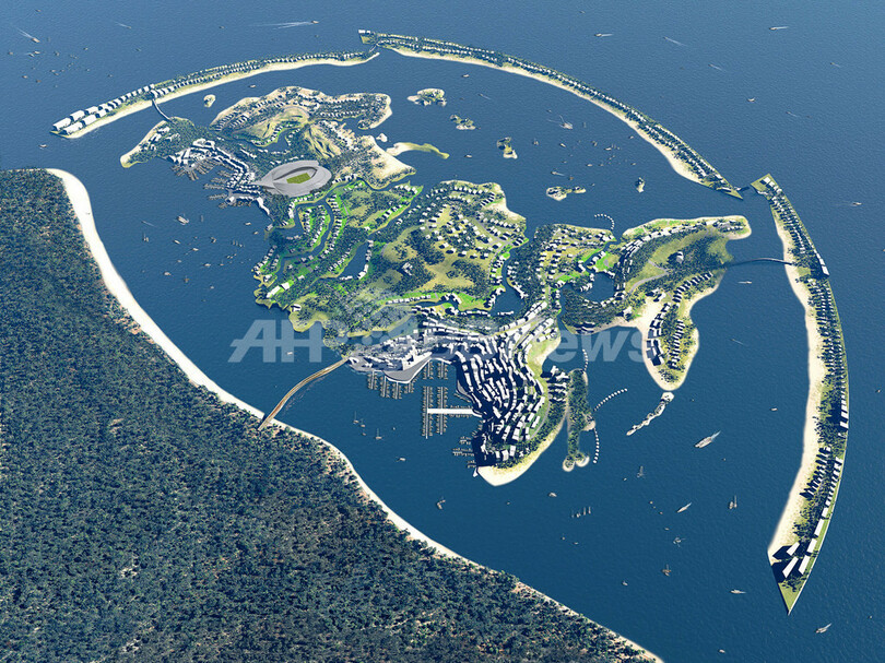 この人工島「Federation Island」には約2万5000人が入居できる集合住宅や別荘が建設される予定で、2014年のオリンピック開催に間に合うよう工事が進められると人工島設計者のオランダ人現代建築家、エリック・ファン・エゲラート(Erick van Egeraat)氏は説明する。