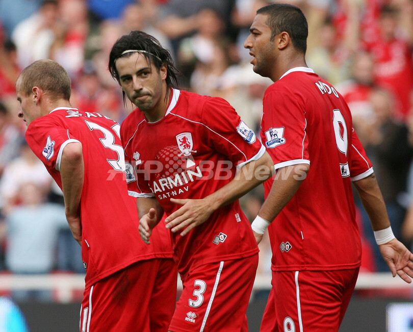 スポーツ サッカー ミドルスブラ ホームでサンダーランドと引き分ける 2007年9月23日 1:40 発信地:ミドルスブラ/英国 [ ヨーロッパ 英国 ] このニュースをシェア ‹ › ❮ 3/4 ❯ 前半14分に同点ゴールをマークしたミドルズブラのフリオ・アルカ(%%Julio Arca%%、中央)。(c)AFP/Lindsey Parnaby 画像作成中 ! 【9月23 AFP】サッカー、07-08イングランド・プレミアリーグ・第7節、ミドルスブラ(Middlesbrough FC)vsサンダーランド(Sunderland AFC)。試合は2-2の引き分けに終わった。(c)AFP サッカー 一覧へ> メディア・報道関係・法人の方向け 写真・動画 購入のお問合せ>
