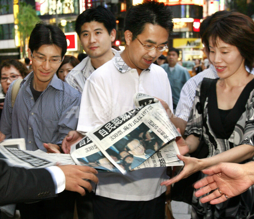【9月23日 AFP】(写真追加)安倍晋三(Shinzo Abe)首相(53)の辞意表明に伴い、23日に投開票が終了した自民党総裁選挙で、福田康夫(Yasuo Fukuda)元官房長官(71)が、同党の総裁に選出された。 25日の国会での首相指名投票で第91代首相に選出されれば、史上初の「親子2代」首相となる。また、前任者の安倍氏が史上最年少の首相だったことと対照的に、1991年以降では最高齢の首相誕生となる。