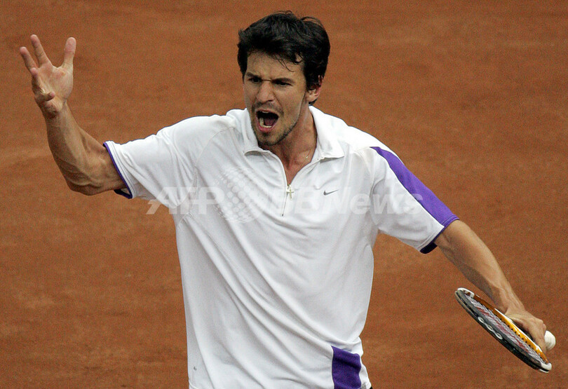 【9月22日 AFP】男子テニス・デビスカップ(2007 Davis Cup)・ワールドグループ2007・準決勝、ロシアvsドイツ。ロシアのミハイル・ユーズニー(Mikhail Youzhny)は、第4試合のシングルスでドイツのフィリップ・ペッツシュナー(Philipp Petzschner)と対戦。ユーズニーはセットカウント3-1(6-4、6-4、3-6、6-3)でペッツシュナーを降し、ロシアは通算成績を2勝2敗の五分に戻した。(c)AFP