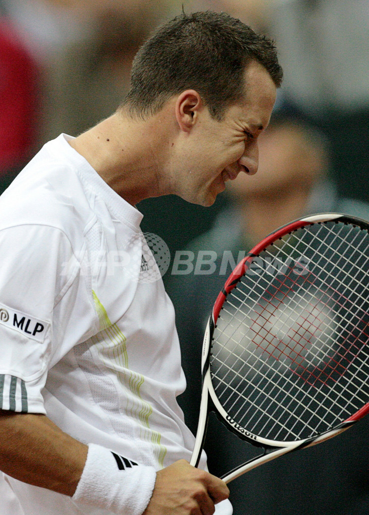 【9月24日 AFP】男子テニス・デビスカップ(2007 Davis Cup)・ワールドグループ2007・準決勝、ロシアvsドイツ。ロシアのイゴール・アンドレエフ(Igor Andreev)は、第5試合のシングルスでドイツのフィリップ・コールシュライバー(Philipp Kohlschreiber)と対戦。アンドレエフはセットカウント3-1(6-3、3-6、6-0、6-3)でコールシュライバーを降し、ロシアは通算成績を3勝2敗とし決勝進出を決めた。(c)AFP