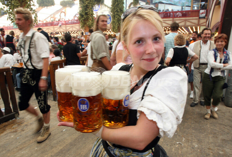 ニュース ライフ 世界最大級のビールの祭典「オクトーバーフェスト」、盛況 2007年9月25日 12:29 発信地:ミュンヘン/ドイツ [ ヨーロッパ ドイツ ] このニュースをシェア ‹ › ❮ 5/25 ❯ 2007年9月23日、独ミュンヘン(Munich)のテレジエンヴィーゼ広場(Theresienwiese)で開かれている世界最大級のビールの祭典「オクトーバーフェスト(Oktoberfest)」でビールを運ぶウエートレス。(c)AFP/JOHN MACDOUGALL 画像作成中 ! 【9月25日 AFP】世界最大級のビールの祭典「オクトーバーフェスト(Oktoberfest)」が、独ミュンヘン(Munich)のテレジエンヴィーゼ広場(Theresienwiese)で開かれ、大勢の来場者が詰めかけている。22日に開幕した同祭典は、10月7日に閉幕する。(c)AFP ライフ 一覧へ> メディア・報道関係・法人の方向け 写真・動画 購入のお問合せ>