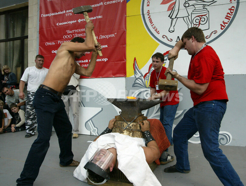 ニュース ライフ こぼれ話 ウクライナの工業都市で鍛冶蹄鉄の国際技能フェスティバル開催 2007年9月25日 11:54 発信地:ドネツク/ウクライナ [ ロシア・CIS ウクライナ ] このニュースをシェア 2007年9月22日、ドネツク(Donetsk)の「International Festival of Blacksmith's Art(国際鍛冶蹄鉄技能フェスティバル)」でのパフォーマンス。(c)AFP/ALEXANDER KHUDOTEPLY 【9月25日 AFP】ウクライナの工業都市ドネツク(Donetsk)で22日、「International Festival of Blacksmith's Art(国際鍛冶蹄鉄技能フェスティバル)」が開催され、真っ赤に燃えさかる鉄を人の腹部上で打つパフォーマンスなどが披露された。(c)AFP ライフ 一覧へ> メディア・報道関係・法人の方向け 写真・動画 購入のお問合せ>
