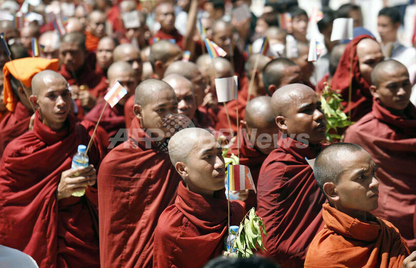 ミャンマー僧侶デモ、軍政の警告後も10万人が行進