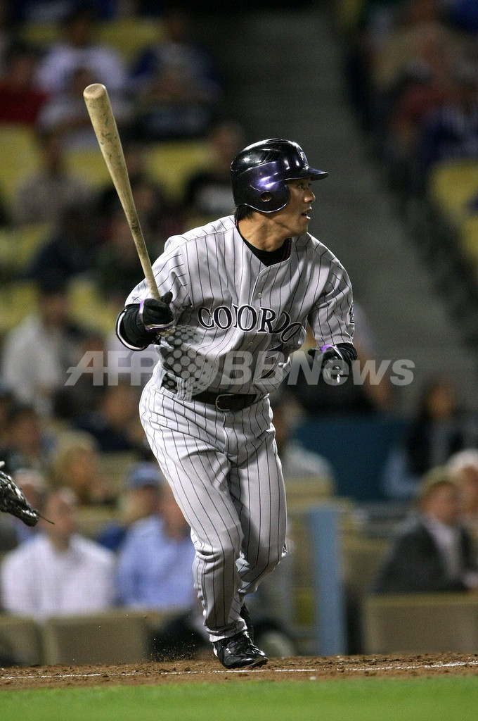 スポーツ 野球 松井稼頭央 ドジャース戦で5打数1安打1打点 2007年9月26日 16:14 発信地:ロサンゼルス/米国 [ 北米 米国 ] このニュースをシェア ‹ › ❮ 1/2 ❯ 3回の第2打席に先制タイムリーを放つ松井稼頭央。(c)AFP/Getty Images Stephen Dunn 画像作成中 ! 【9月26日 AFP】07MLB、ロサンゼルス・ドジャース(Los Angeles Dodgers)vsコロラド・ロッキーズ(Colorado Rockies)。1番・二塁で先発出場したロッキーズの松井稼頭央(Kazuo Matsui)は、5打数1安打1打点を記録した。試合はロッキーズが9-7でドジャースを降し、9連勝を飾った。(c)AFP/Getty Images 野球 一覧へ> メディア・報道関係・法人の方向け 写真・動画 購入のお問合せ>