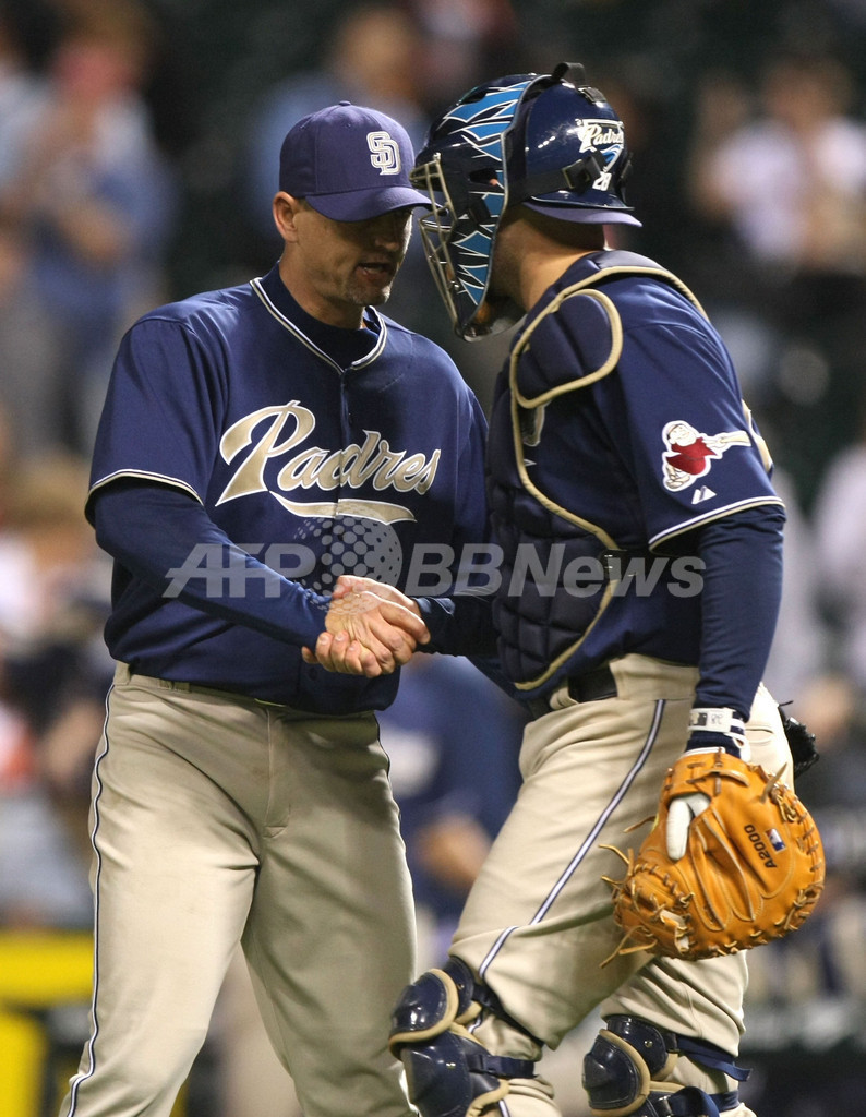 スポーツ 野球 パドレス ジャイアンツに勝利し連敗は4でストップ 2007年9月26日 16:35 発信地:サンフランシスコ/米国 [ 北米 米国 ] このニュースをシェア ‹ › ❮ 11/13 ❯ 試合後にチームメイトのジョシュ・バード(%%Josh Bard%%)と握手を交わすパドレスの守護神トレバー・ホフマン(%%Trevor Hoffman%%)。(c)AFP/Getty Images Jed Jacobsohn 画像作成中 ! 【9月26日 AFP】07MLB、サンフランシスコ・ジャイアンツ(San Francisco Giants)vsサンディエゴ・パドレス(San Diego Padres)。試合はパドレスが6-4でジャイアンツを降し、連敗を4で止めた。(c)AFP 野球 一覧へ> メディア・報道関係・法人の方向け 写真・動画 購入のお問合せ>