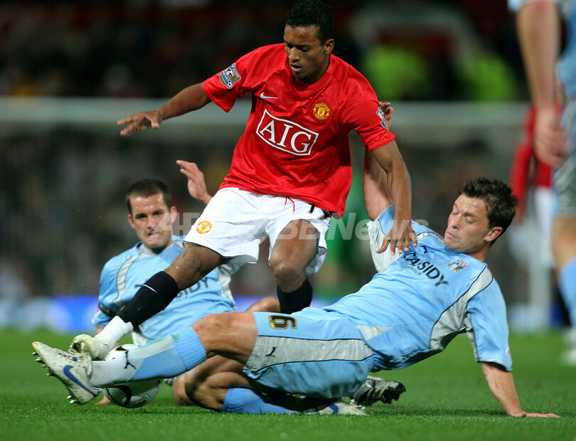 スポーツ サッカー コベントリー マンチェスター・ユナイテッドを降し4回戦へ 2007年9月27日 11:21 発信地:マンチェスター/英国 [ ヨーロッパ 英国 ] このニュースをシェア ‹ › ❮ 3/10 ❯ コベントリーのマイケル・ドイル(%%Michael Doyle%%、左)とスティーヴン・ヒューズ(%%Stephen Hughes%%、右)からスライディングを受けるマンチェスター・ユナイテッドのナニ(%%Luis Cunha aka Nani%%)。(c)AFP/ANDREW YATES 画像作成中 ! 【9月27日 AFP】サッカー、イングランド・カーリング杯2007(Carling Cup 2007)・3回戦、マンチェスター・ユナイテッド(Manchester United)vsコベントリー・シティ(Coventry City)。試合はコベントリーが2-0で勝利を収め、4回戦進出を決めた。(c)AFP サッカー 一覧へ> メディア・報道関係・法人の方向け 写真・動画 購入のお問合せ>