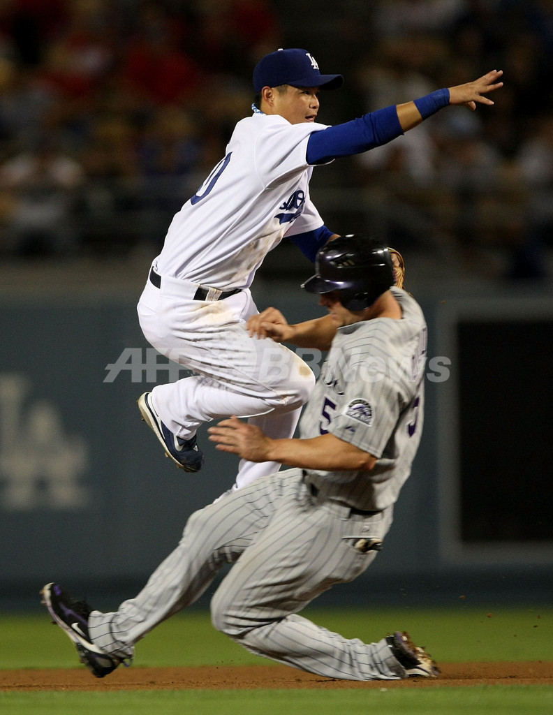 スポーツ 野球 ロッキーズ ドジャースに勝利し10連勝を飾る 2007年9月27日 16:55 発信地:ロサンゼルス/米国 [ 北米 米国 ] このニュースをシェア ‹ › ❮ 2/9 ❯ ロッキーズのマット・ホリデー(%%Matt Holliday%%)を二塁ホースアウトに仕留め一塁へ送球するドジャースのフウ・チンルン(%%Chin-Lung Hu%%)。(c)AFP/Getty Images Stephen Dunn 画像作成中 ! 【9月27日 AFP】07MLB、ロサンゼルス・ドジャース(Los Angeles Dodgers)vsコロラド・ロッキーズ(Colorado Rockies)。試合はロッキーズが2-0で勝利を収め、連勝を10に伸ばした。(c)AFP/Getty Images 野球 一覧へ> メディア・報道関係・法人の方向け 写真・動画 購入のお問合せ>