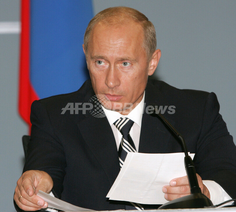 ロシア国内の報道によると、プーチン大統領は「制裁措置の発動は国連(United Nations、UN)の特別会合で議論されるべき事柄であり、今はまだ議論するには早すぎる」との見解を示したという。(c)AFP