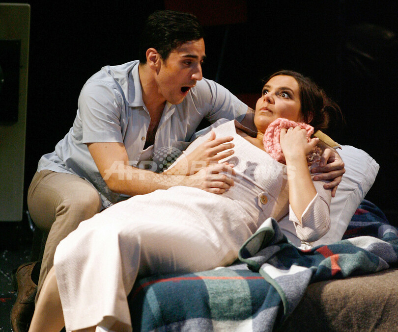 2007年9月26日、ジャコモ・プッチーニ(Giacomo Puccini)の4幕オペラ『ラ・ボエーム(La Boheme)』のリハーサルに臨むテノール歌手の%%Leonardo Capalbo%%(左)とソプラノ歌手の%%Virginia Tola%%。(c)AFP/JEAN PIERRE MULLER