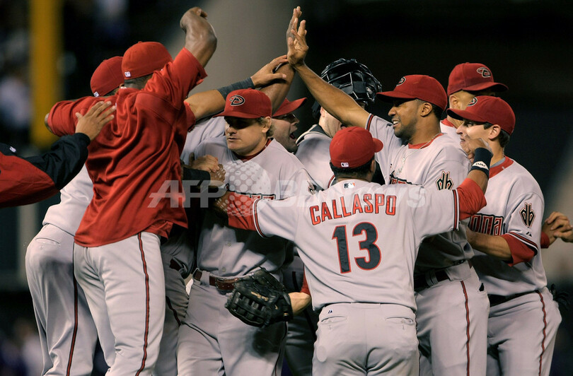 スポーツ 野球 ダイヤモンドバックス プレーオフ進出を決める 2007年9月29日 17:51 発信地:デンバー/米国 [ 北米 米国 ] このニュースをシェア ‹ › ❮ 6/14 ❯ 勝利を収めプレーオフ進出決定に歓喜するダイヤモンドバックスの選手たち。(c)AFP/Getty Images Doug Pensinger 画像作成中 ! 【9月29日 AFP】07MLB、コロラド・ロッキーズ(Colorado Rockies)vsアリゾナ・ダイヤモンドバックス(Arizona Diamondbacks)。試合はダイヤモンドバックスが4-2でロッキーズを降し、プレーオフ進出が決定した。(c)AFP/Getty Images 野球 一覧へ> メディア・報道関係・法人の方向け 写真・動画 購入のお問合せ>
