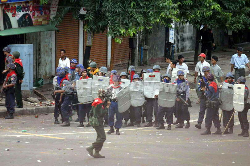 同日、スーレ・パゴダ(仏塔、Sule Pagoda)付近には大勢の兵士が配備された。