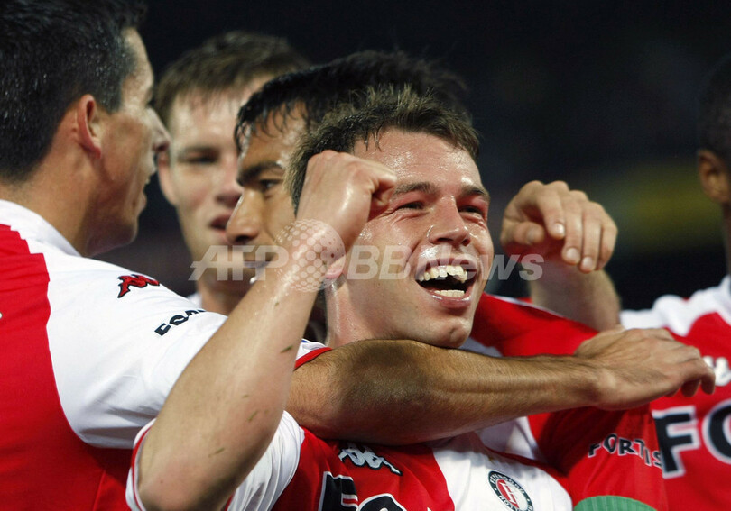 スポーツ サッカー フェイエノールト ホームでヘーレンフェーンを降す 2007年9月30日 6:04 発信地:ロッテルダム/オランダ [ ヨーロッパ オランダ ] このニュースをシェア 前半28分にニッキー・ホフス(%%Nicky Hofs%%)が決めたチーム2点目のゴールを喜ぶフェイエノールトのジョバンニ・ファン・ブロンクホルスト(%%Giovanni Van Bronckhorst%%、中央)。(c)AFP/ANP/MARCEL ANTONISSE 【9月30日 AFP】サッカー、07-08オランダ・エールディビジ・第6節、フェイエノールト(Feyenoord)vsヘーレンフェーン(Heerenveen)。試合はフェイエノールトが2-0でヘーレンフェーンを降し、シーズン5勝目を挙げた。(c)AFP サッカー 一覧へ> メディア・報道関係・法人の方向け 写真・動画 購入のお問合せ>
