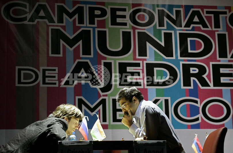 【9月30日 AFP】メキシコ・メキシコ市(Mexico City)で開催されていたチェスの世界選手権で29日、インドのVishwanathan Anandさん(37)が前回チャンピオン、ロシアのVladimir Kramnikさんに代わって世界チャンピオンに輝いた。大会14日目、AnandさんはハンガリーのPeter Lekoさんと対戦。結果は引き分けとなったが、終始優位に立っていたAnandさんが判定勝ちを収めた。(c)AFP
