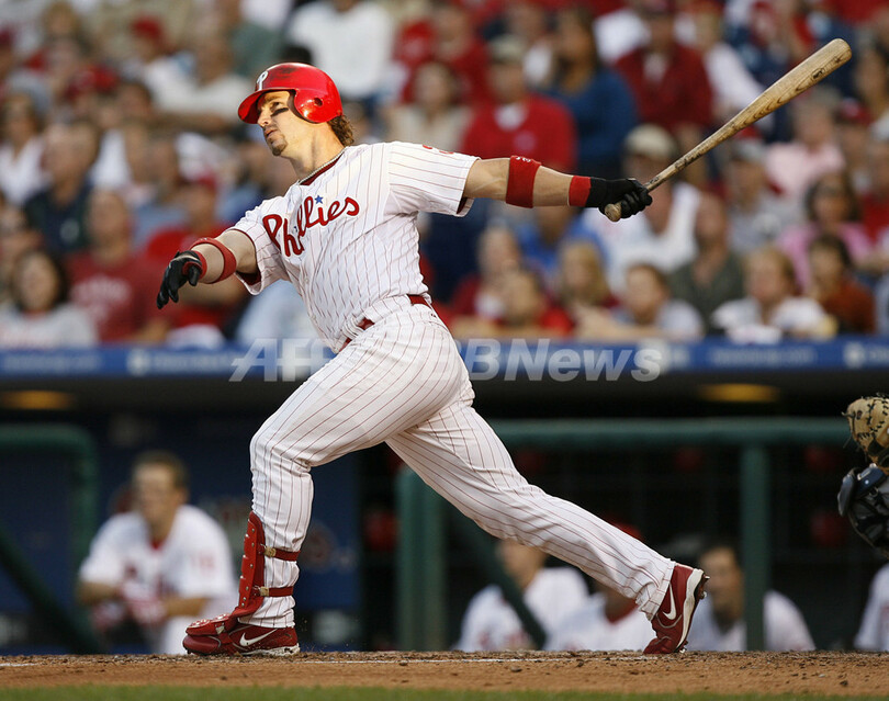 【9月30日 AFP】07MLB、フィラデルフィア・フィリーズ(Philadelphia Phillies)vsワシントン・ナショナルズ(Washington Nationals)。試合はフィリーズが2-4でナショナルズに敗れた。ナショナルリーグの東地区で優勝争いをするニューヨーク・メッツ(New York Mets)が同日に行われたフロリダ・マーリンズ(Florida Marlins)戦に13-0と快勝し、フィリーズとメッツはゲーム差無しで首位に並んだため、地区優勝の行方は10月1日に行われるレギュラーシーズンの最終戦へ持ち越された。(c)AFP