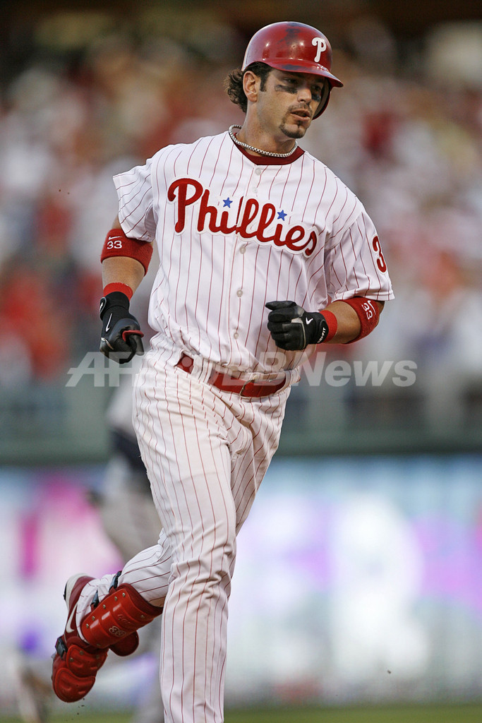 【9月30日 AFP】07MLB、フィラデルフィア・フィリーズ(Philadelphia Phillies)vsワシントン・ナショナルズ(Washington Nationals)。試合はフィリーズが2-4でナショナルズに敗れた。ナショナルリーグの東地区で優勝争いをするニューヨーク・メッツ(New York Mets)が同日に行われたフロリダ・マーリンズ(Florida Marlins)戦に13-0と快勝し、フィリーズとメッツはゲーム差無しで首位に並んだため、地区優勝の行方は10月1日に行われるレギュラーシーズンの最終戦へ持ち越された。(c)AFP