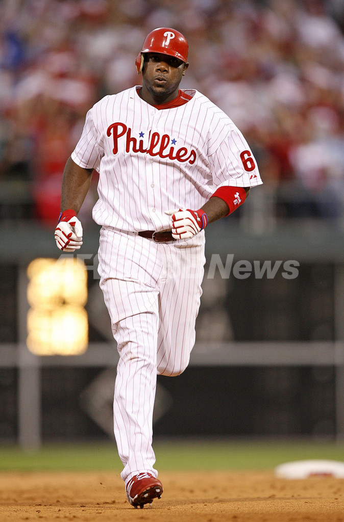 【9月30日 AFP】07MLB、フィラデルフィア・フィリーズ(Philadelphia Phillies)vsワシントン・ナショナルズ(Washington Nationals)。試合はフィリーズが2-4でナショナルズに敗れた。ナショナルリーグの東地区で優勝争いをするニューヨーク・メッツ(New York Mets)が同日に行われたフロリダ・マーリンズ(Florida Marlins)戦に13-0と快勝し、フィリーズとメッツはゲーム差無しで首位に並んだため、地区優勝の行方は10月1日に行われるレギュラーシーズンの最終戦へ持ち越された。(c)AFP