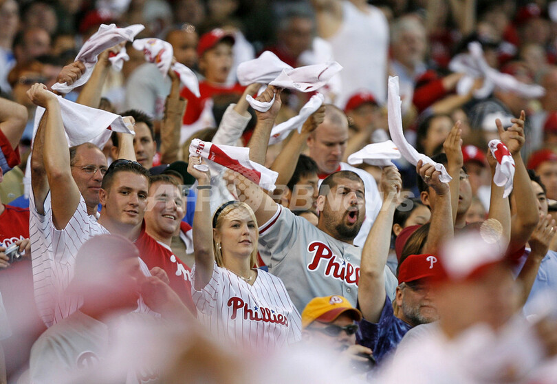 【9月30日 AFP】07MLB、フィラデルフィア・フィリーズ(Philadelphia Phillies)vsワシントン・ナショナルズ(Washington Nationals)。試合はフィリーズが2-4でナショナルズに敗れた。ナショナルリーグの東地区で優勝争いをするニューヨーク・メッツ(New York Mets)が同日に行われたフロリダ・マーリンズ(Florida Marlins)戦に13-0と快勝し、フィリーズとメッツはゲーム差無しで首位に並んだため、地区優勝の行方は10月1日に行われるレギュラーシーズンの最終戦へ持ち越された。(c)AFP