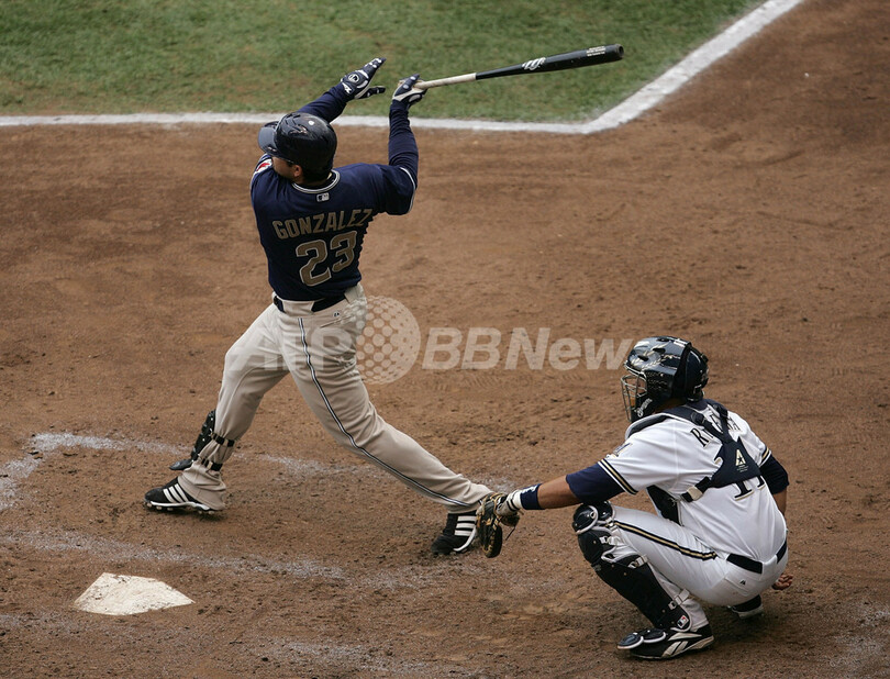 スポーツ 野球 パドレス 延長戦で敗れ地区優勝を逃す 2007年9月30日 14:12 発信地:ミルウォーキー/米国 [ 北米 米国 ] このニュースをシェア ‹ › ❮ 7/9 ❯ 6回表にシーズン第28号となる本塁打を放つパドレスのエイドリアン・ゴンザレス(%%Adrian Gonzalez%%)。(c)AFP/Getty Images Jonathan Daniel 画像作成中 ! 【9月30日 AFP】07MLB、ミルウォーキー・ブルワーズ(Milwaukee Brewers)vsサンディエゴ・パドレス(San Diego Padres)。試合はパドレスが延長11回に3-4でサヨナラ負けを喫し、ナショナルリーグ西地区の優勝はアリゾナ・ダイヤモンドバックス(Arizona Diamondbacks)に決まった。(c)AFP 野球 一覧へ> メディア・報道関係・法人の方向け 写真・動画 購入のお問合せ>