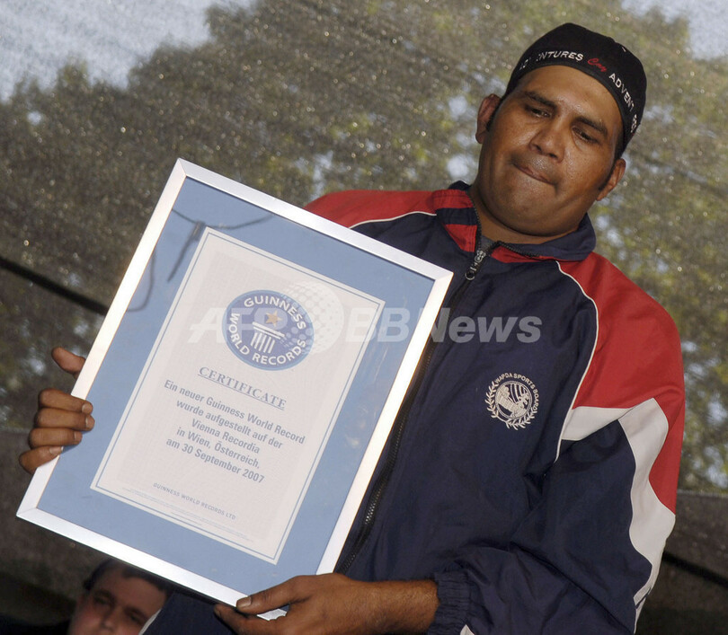 【10月1日 AFP】(一部更新)オーストリアの首都ウィーン(Vienna)のプラーター(Prater)公園で9月30日、特殊な器具を装着した耳で重量挙げをするイベントが開催され、パキスタン人のZafar Gillさんが約62キロの重りを7秒間ほど持ち上げてギネス世界記録(Guinness World Records)を樹立した。