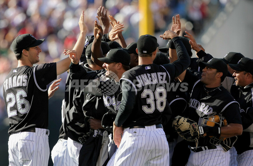 【10月1日 AFP】07MLB、コロラド・ロッキーズ(Colorado Rockies)vsアリゾナ・ダイヤモンドバックス(Arizona Diamondbacks)。試合はロッキーズが4-3でダイヤモンドバックスを降し、ナショナルリーグのワイルドカード争いで首位に立つサンディエゴ・パドレス(San Diego Padres)が同日行われたミルウォーキー・ブルワーズ(Milwaukee Brewers)戦を11-6で敗れたため、ロッキーズはパドレスと並んだ。ロッキーズは現地1日に地元のデンバーでプレーオフ進出を賭けてパドレスと対戦する。(c)AFP