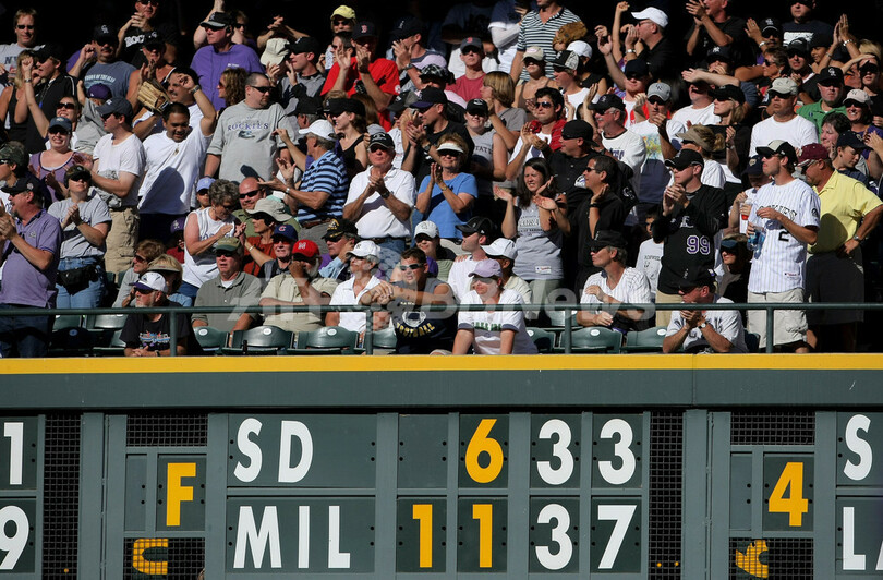 【10月1日 AFP】07MLB、コロラド・ロッキーズ(Colorado Rockies)vsアリゾナ・ダイヤモンドバックス(Arizona Diamondbacks)。試合はロッキーズが4-3でダイヤモンドバックスを降し、ナショナルリーグのワイルドカード争いで首位に立つサンディエゴ・パドレス(San Diego Padres)が同日行われたミルウォーキー・ブルワーズ(Milwaukee Brewers)戦を11-6で敗れたため、ロッキーズはパドレスと並んだ。ロッキーズは現地1日に地元のデンバーでプレーオフ進出を賭けてパドレスと対戦する。(c)AFP
